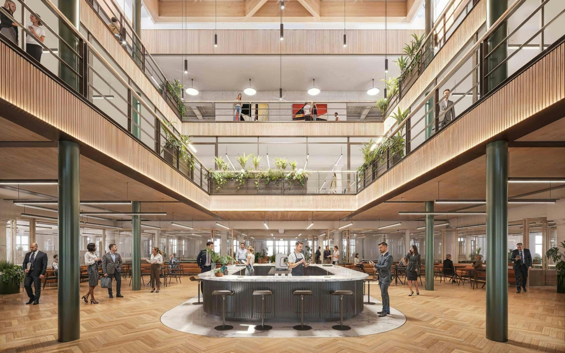 Working closely with the whole project team, including AHMM, contractor Mace, building services engineers Arup and the client’ agents, we are helping deliver a beautiful space in which it will be a pleasure to work and socialise. The open plan and adaptable office floors are bright and wellbeing-friendly, benefitting from generous 3.4–5.0m floor-to-ceiling heights.